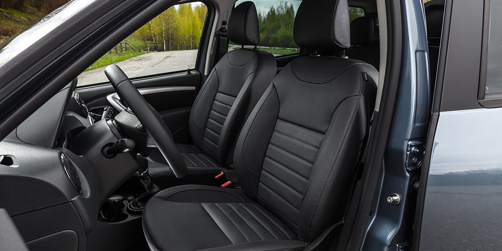 Nissan Terrano 2 Jeep seat covers in anthracite with leatherette trim – 2 fronts