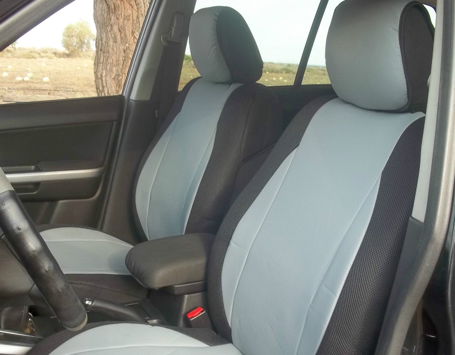 Toyota Landcruiser Jeep seat covers in anthracite with leatherette trim – 2 fronts